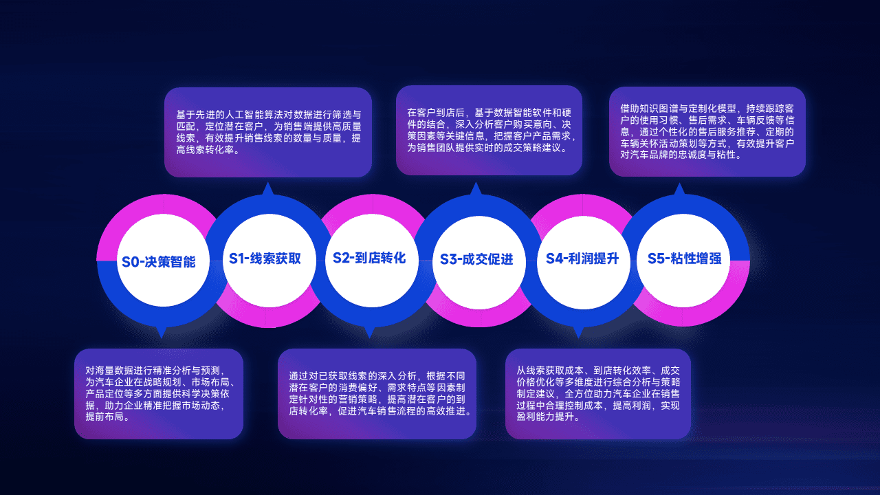 通过拓宽潜在客户来源、、、、优化线索分配并提高到店转化率,,,,以增强销售效率。。。同时,,,利用线索数据不断优化分析模型,,有效提升转化率,,扩大营销影响力。。。。